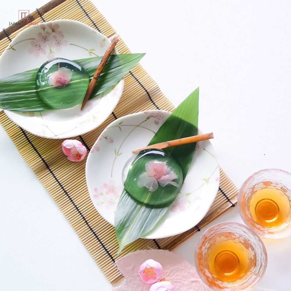 – Sakura Mochi (桜餅): Đây là một loại bánh mochi phổ biến vào mùa xuân ở Nhật Bản, thường có một lá anh đào (sakura) đã đóng băng ở phía trên và nhân đậu đỏ hoặc custard bên trong.